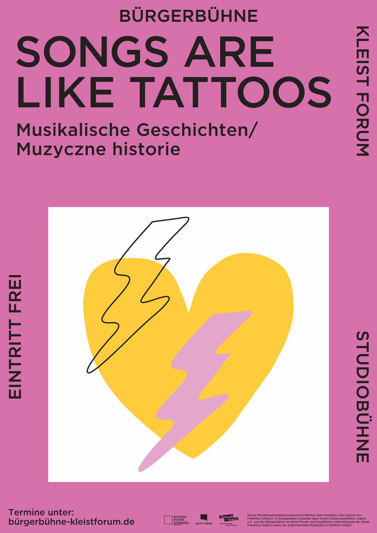 Dieser Musiktheaterabend entstand im Rahmen des Projektes »Der Sound von Frankfurt (Oder)«. In Kooperation zwischen dem Verein Kulturmanufaktur Impuls e.V. und der Bürgerbühne im Kleist Forum mit freundlicher Unterstützung der Stadt Frankfurt (Oder) sowie der Kulturbetriebe/Kulturbüro Frankfurt (Oder).